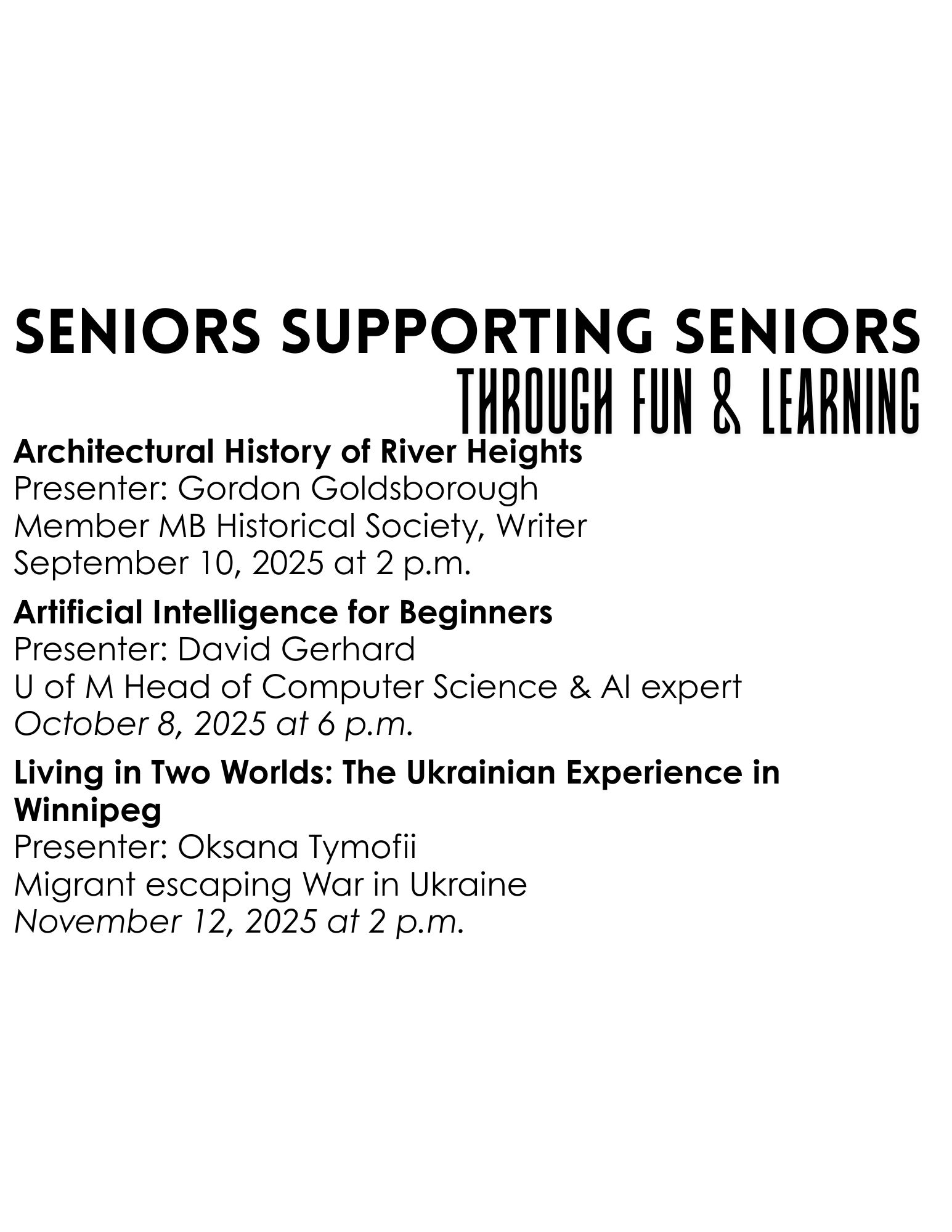Join us for a discussion about the Architectural History of River Heights with presenter Gordon Goldsborough, Member of MB Historical Society and Writer among many other titles and accomplishments.