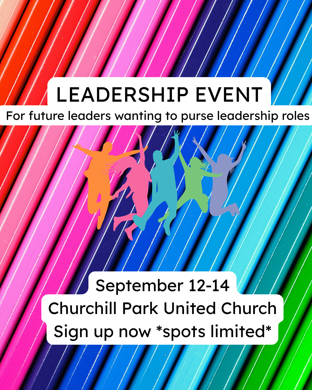 Leadership Event for Future Leaders wanting to pursue Leadership Roles Friday Sept 12th to Sunday Sept 14th, 2025 Churchill Park United Church 525 Beresford Ave. Winnipeg, MB While the ALF Planning Team is meeting, future leaders will gather in the same building to learn leadership skills. They will join in a YAAY meeting, plan and […]