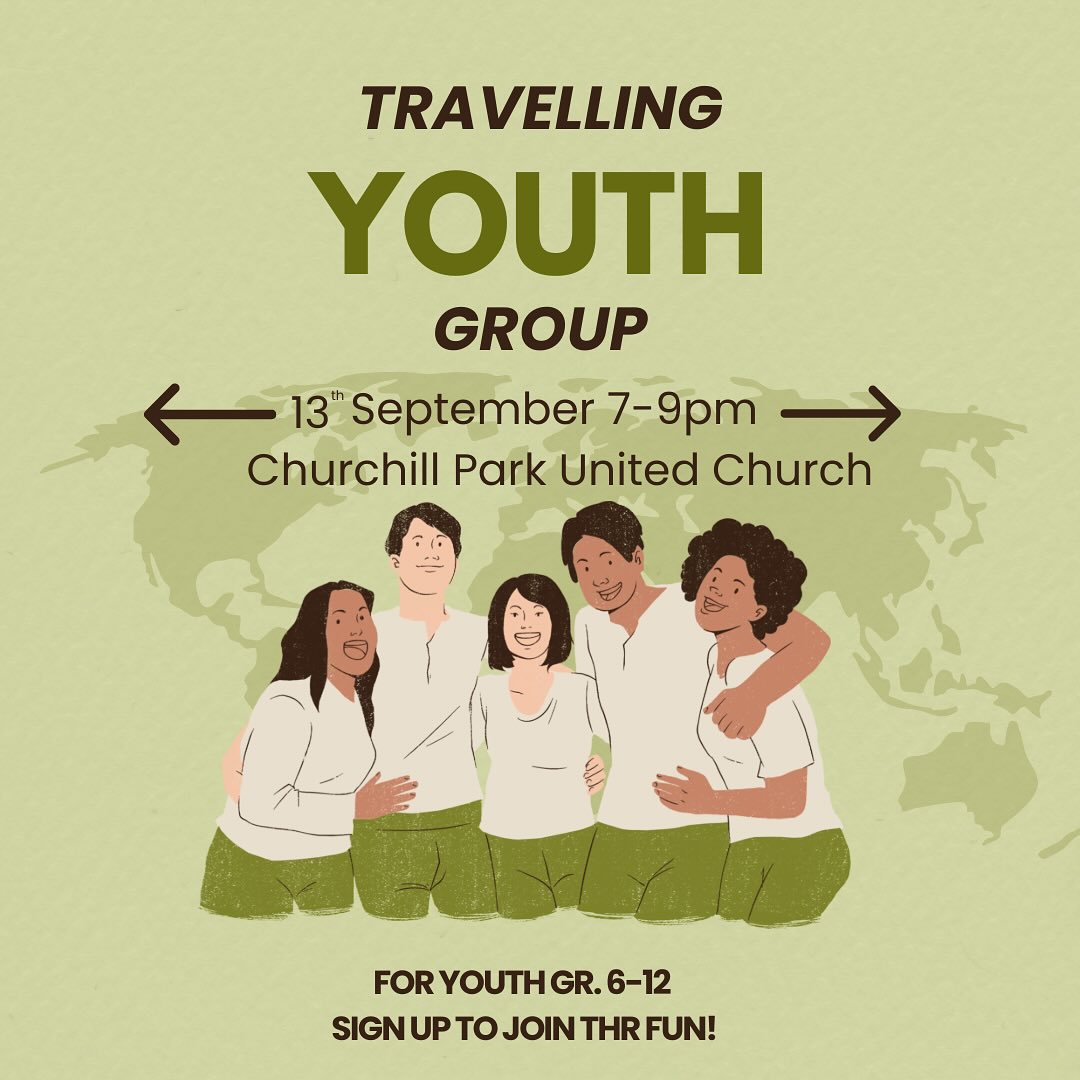 Travelling Youth Group is back for a new school year! Are you Grade 6-12? Join us Saturday September 13th 7-9pm at Churchill Park United Church for Activities and worship led by the leadership event participants. Register Here